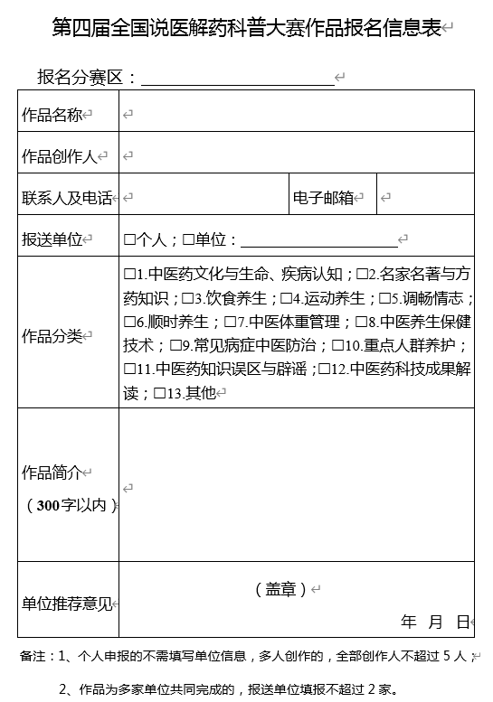 附件:1.第四届全国说医解药科普大赛参赛报名表