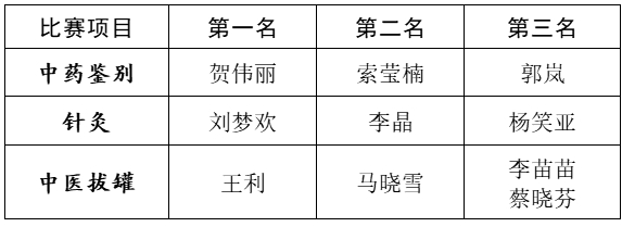 此次技能选拔赛为全院中医药人员搭建了一个交流学习、切磋技艺的平台,不仅激发了大家钻研业务、提升技能的积极性,更营造了“比学赶超、精益求精”的良好氛围,为推动医院中医药事业高质量发展注入了新动力。经过激烈角逐比赛最终结果为: