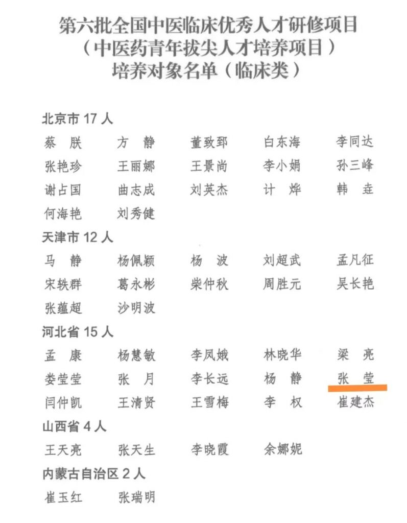 【喜报!】丰润区中医医院张莹入选第六批全国中医临床优秀人才研修项目培养对象