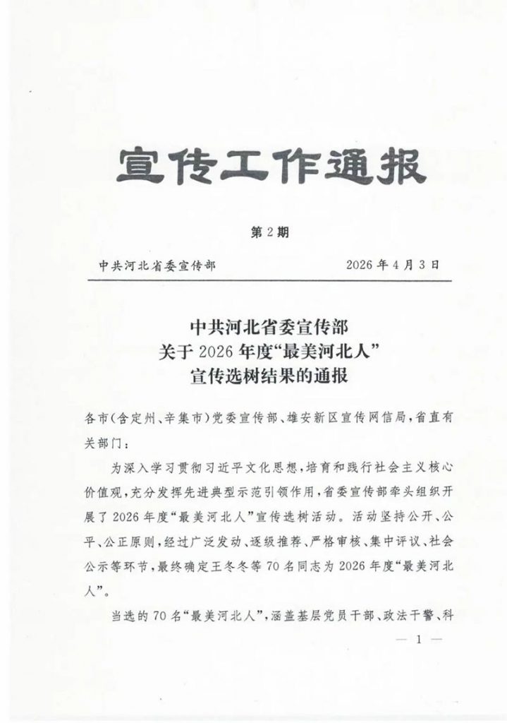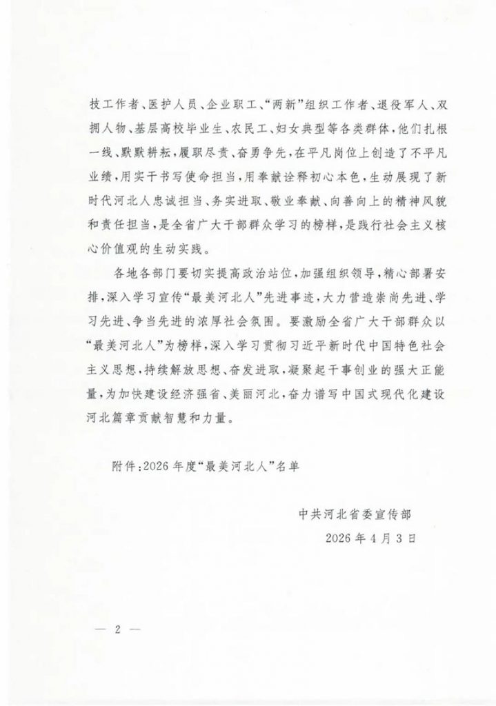 喜报!邢台市中医医院陈娟当选2026年度“最美河北人”