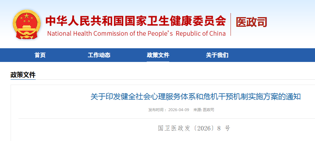 社会心理服务体系和危机干预机制建设是社会治理体系的重要内容。2018年11月,国家卫生健康委、中央政法委等10部门印发《全国社会心理服务体系建设试点工作方案》,开展了为期4年的试点工作;2023年,对试点工作进行了评估总结,对典型经验进行了推广。党的二十届三中、四中全会提出“健全社会心理服务体系和危机干预机制”的要求。据此,在总结前期试点工作基础上,国家卫生健康委会同有关部门研究制定了《健全社会心理服务体系和危机干预机制实施方案》(以下简称《实施方案》)。