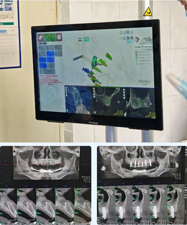 口腔种植团队将术前三维规划数据导入机器人系统,机械臂按照预设路径精准定位、逐级备洞,并顺利植入种植体。整个手术过程流畅,误差控制在亚毫米级,有效避免了重要神经血管损伤。患者术后无明显不适,对手术体验和初步效果表示非常满意。